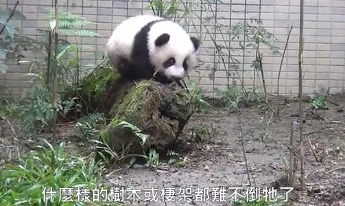 台北市立动物园今天公布影片,9308克的圆仔四肢发展相当好,很喜欢爬树和站高高,只见牠身手利落地爬上有自己肩膀高度的石头,登高远眺。