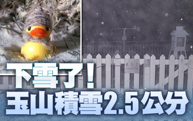 昨晚玉山初雪,积雪2.5公分。(台媒报道图)