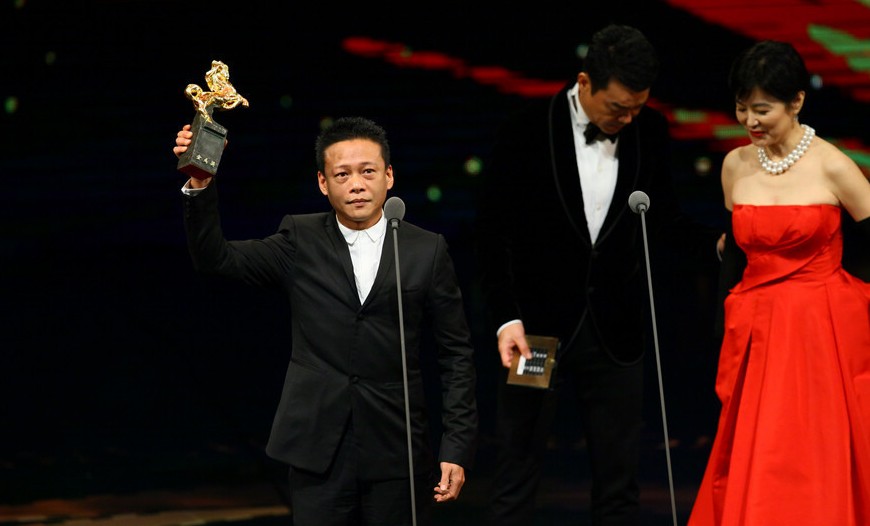 李康生上台前,亲密伙伴蔡明亮兴奋地亲吻他,李康生称帝感言:“要在各位影帝面前拿到最佳男主角,比登天还难,如果可以分成5份,我愿意分给大家。”