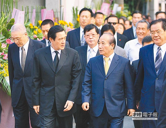 台“立法院长”王金平(右二)大哥王珠庆过世,马英九(左二)吊唁,由王金平陪同步出灵堂。(图片来自台媒)
