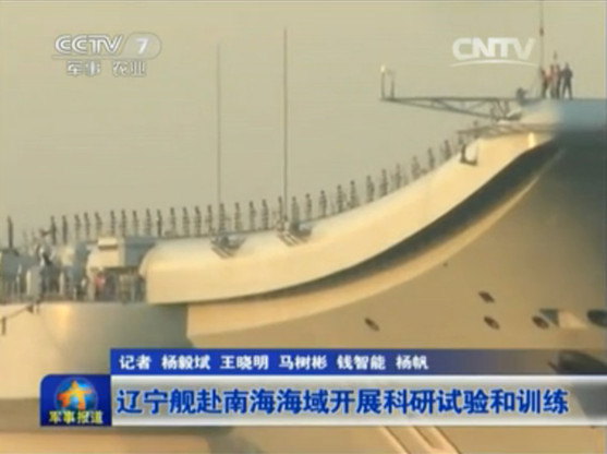 辽宁舰赴南海海域开展科研试验和训练。(CCTV视频截图)