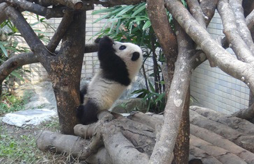 中国台湾网12月1日消息 据台湾媒体报道,台北市立动物园的大熊猫宝宝“圆仔”已经148天大,体重10.9公斤。北市动物园今表示,圆仔现在是保育员们的跟屁虫,也是个“熊”精,妈妈“圆圆”做什么牠就跟着做,例如学喝水、学咬竹子、学爬高。之前圆仔下栖架到达一定高度时,牠会让自己滚下来,现在圆仔好像抓到了诀窍,会小心翼翼半滑半溜的下栖架。