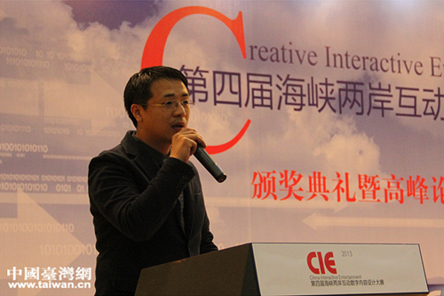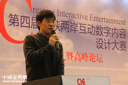 趣游科技集团海外合作中心总监吴晓宝作主题发言。(中国台湾网 刘承思 摄)