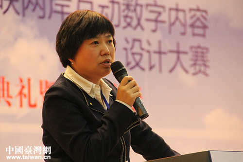 北京掌上明珠信息技术有限公司海外战略副总裁闵梅作主题发言。(中国台湾网 刘承思 摄)