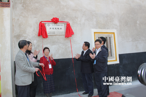 中国台湾网12月7日广东蕉岭消息 12月6日,在著名台胞之乡广东蕉岭县蓝坊镇大地村,举行了台湾抗日志士罗福星故居列为广东省文物保护单位的挂牌仪式,全国政协常委、全国台联党组书记梁国杨,罗福星孙女罗秋昭,台湾抗日志士亲属协进会参访团一行出席了挂牌仪式。仪式后,各界来宾参观了修缮完毕的罗福星故居。