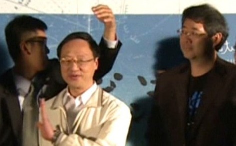 江宜桦被“威鞋”,维安人员连忙上前“护驾”。(台媒图)