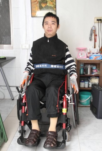 卢柚升因跳水池受伤,现在只能坐轮椅代步。(台媒图)