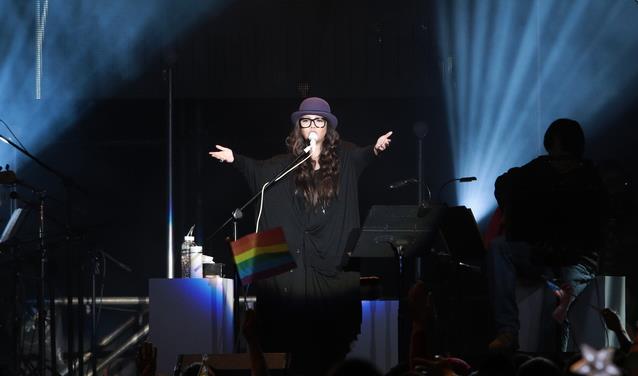 张惠妹冬至寒夜自费献唱力挺同志真爱,引来近2万名观众同欢。(图片来自台媒)