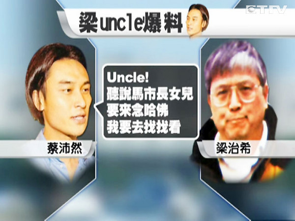 梁治希爆料,蔡沛然1999年先念哥伦比亚大学,后来到日本当交换学生一年,认识一名身材丰满的英国妹,接着申请进入哈佛后,与英国妹分手。之后与长相甜美的新加坡长发美女交往,不久又跟家里经营成衣的方姓香港富家女传恋情。2003年蔡沛然认识马唯中,两人交往期间,蔡同时与香港富家女分分合合两次。台媒报道指即使马蔡交往多年,蔡也曾多次劈腿,带马唯中以外的亚洲女性出席公开场合。