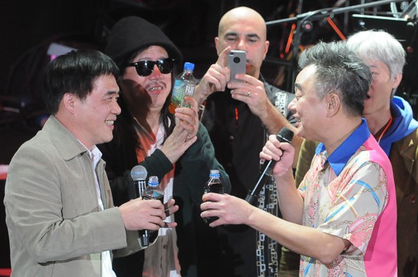 陈升演唱会的“跨年演唱会”唱进第20年,今年28、30日于台北国际会议中心开唱。他前一天记者会上呼吁观众“可以带东西进来吃”,果然就有人带了酒类助兴。陈升才唱到第五首《原住民的演唱会》,就有台下观众送上一杯红酒,他也爽快喝光。