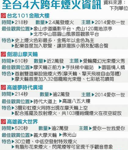 全台湾4大跨年烟火秀信息。(来自台媒)