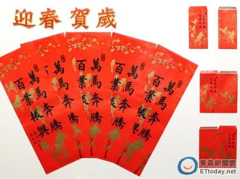 马办表示,2014特别印制以“马”为图腾的贺岁春联及红包袋,祝福民众在新的一年马到成功、百业兴旺。马办指出,马年春联、红包袋上印有马英九亲题的“万马奔腾、百业振兴”贺词,并由马英九与吴敦义共同署名;图样设计则是以水墨画形式,呈现骏马奔驰之姿态,并以多匹骏马来象征“万马奔腾”意象,意寓民间旺盛且勤奋之生命力与竞争力。此次设计图样并搭配清雅高洁的梅花,显示冬末春初之蓬勃朝气与简约利落之风格,蕴含浓厚东方韵味,更能增添传统农历年节气氛。(中国台湾网 高旭)