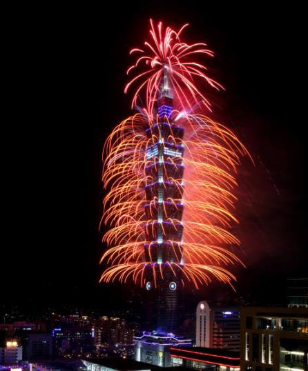 台北101大楼自2005年起,每年元旦零时零分施放跨年烟火,多年来已成为年度盛事,也是国际媒体如英国广播公司(BBC)电视台等转播亮点,并获美国有线电视新闻网(CNN)网站评选为全球10大独具特色跨年城市活动之一。(中国台湾网 周剑)