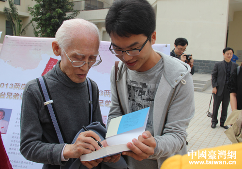 余光中先生为学生签名。(中国台湾网 李瑞艳 摄)