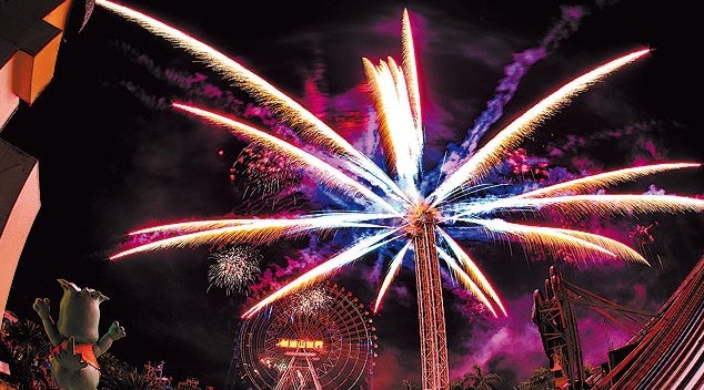 剑湖山跨年烟火秀,摩天轮与高空烟火呼应。(台媒图)