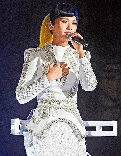 杨丞琳昨由下而上升起登场,噱头十足。(台媒图)