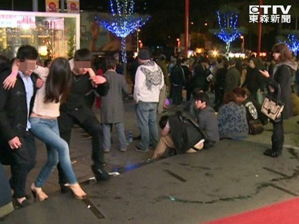 台北华纳威秀附近也是夜店聚集区,不少夜店都是等到跨年烟火结束之后才营业接客,只是不少人早就喝了不少,也顾不得马路上人挤人,就出现一大堆东倒西歪的情况,不少辣妹就这样在友人的搀扶下,上了出租车消失在街头。