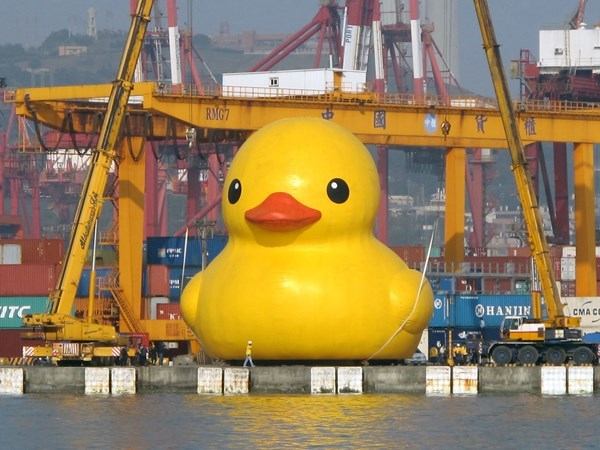 跨年前夕,基隆大黄鸭因天气变化过大,导致鸭体内空气热胀冷缩而爆破,让台湾民众都傻眼,爆裂伤痕长达8米。经紧急缝补之后,今天是刀疤鸭重新上工后的首个双休日。
