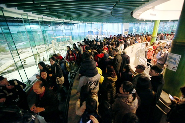 动物园门口清晨5、6时就出现抢看“圆仔”的头香客,每个人都是全副武装,包得紧紧就为了看“圆仔”。截至动物园9时开园前,排队人龙已经延伸至捷运动物园站,约有500、600人。