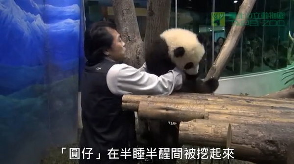 圆仔昨(6)日上午9时首次“上班”见客,撑了1个小时左右便呼呼大睡;直到下午5时10分下班,半梦半醒的圆仔被保育员抱走,挥挥小肥腿和大家说再见。回到栏舍,圆仔伸展一下四肢,打个哈欠,便睡眼惺忪地去找“水盆君”。