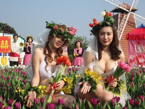 台中郁金香花季登场 比基尼花仙子爆乳代言(组图)
