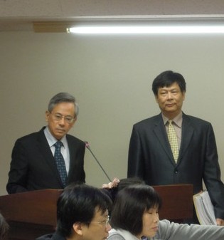 台当局“卫福部长”邱文达(左),“食药署长”叶明功(右)。(台媒图)