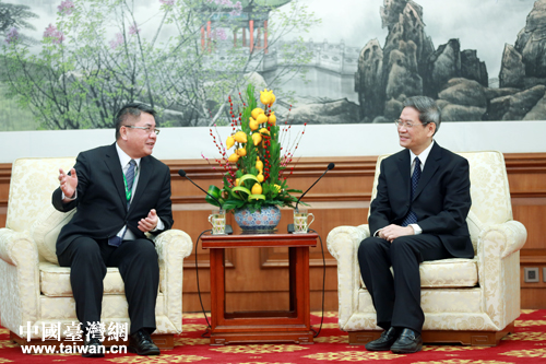 1月10日, 中共中央台办、国务院台办主任张志军在北京会见了东莞台商子弟学校叶宏灯董事长率领的毕业班学生“北京文化之旅”参访团一行。(中国台湾网 于斯文 摄)