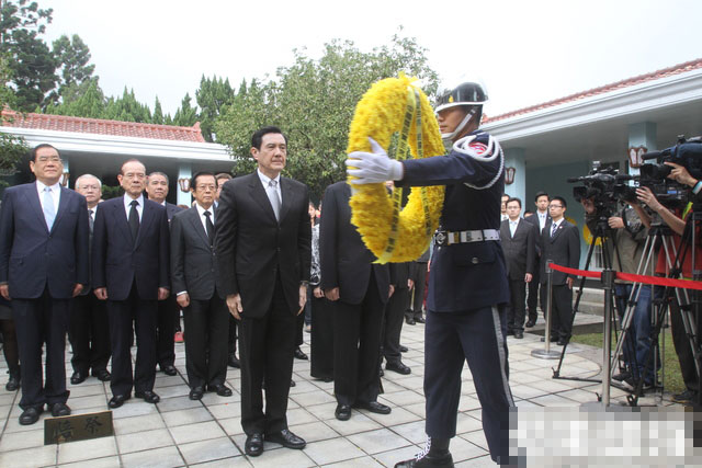 祭拜中马英九不发一语,一结束即离开。(图片取自台媒)