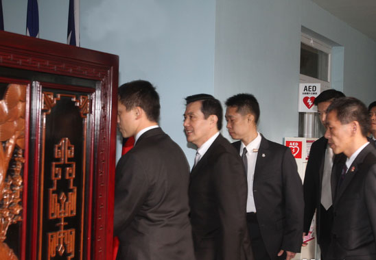 马英九抵达后先与在场人士点头致意,随即献花、三鞠躬祭拜仪式。马英九行礼后步入室内,站在蒋经国棺木前悼念3分钟,祭拜全程不发一语。此后一行驱车离开。(中国台湾网 何建峰)