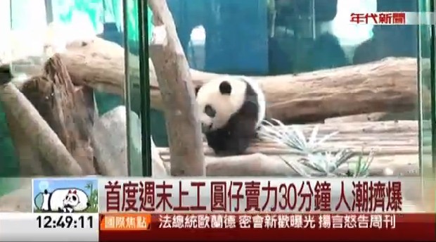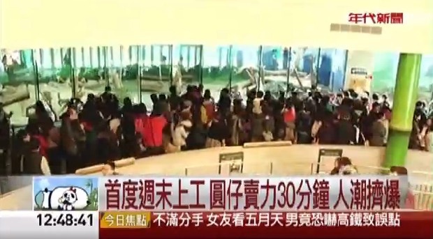 首度周末上工的“圆仔”卖力30分钟,人潮涌动。(截屏自台湾年代电视画面)