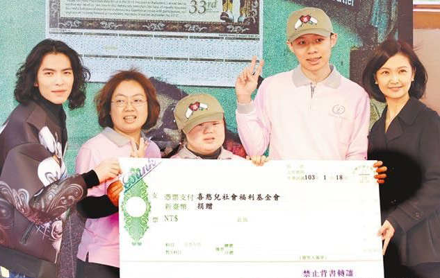萧敬腾(左)日前参加签书会时,捐出版税给喜憨儿等弱势团体。(资料照片)