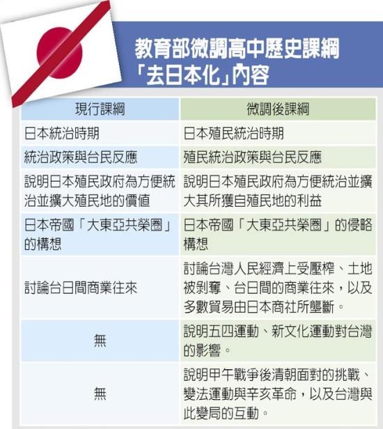 台当局“教育部”微调高中历史课纲“去日本化”内容(图片来源:台湾《中国时报》)