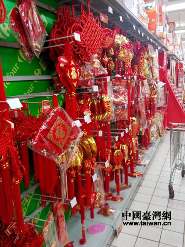 超市中喜气的中国结。(中国台湾网 秦彬 摄)