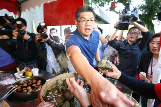 连胜文上午到木栅指南宫参拜,一路上与民众握手致意。来源:台湾《联合报》