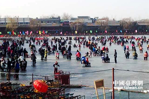 人们在后海滑冰。(中国台湾网 刘承思 摄)