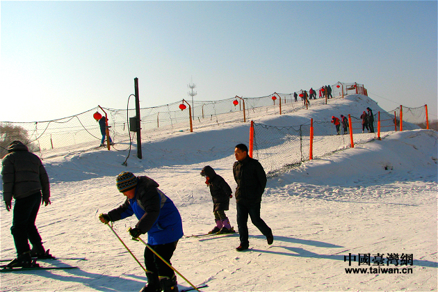 冰场另一侧,积雪堆成了小型滑雪场。(中国台湾网 马迪 摄)