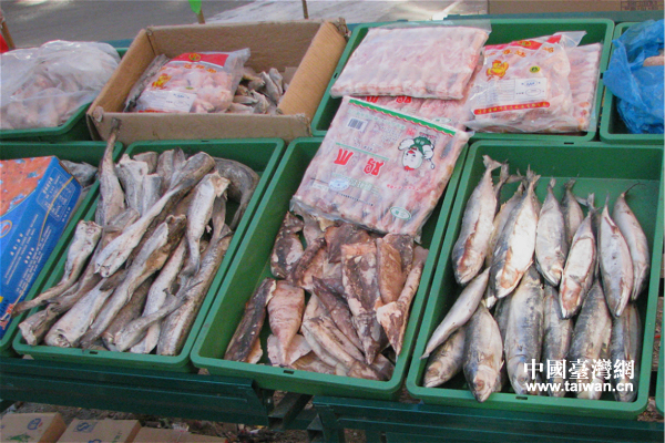 速冻水产直接摆在路边供人买卖。(中国台湾网 马迪 摄)