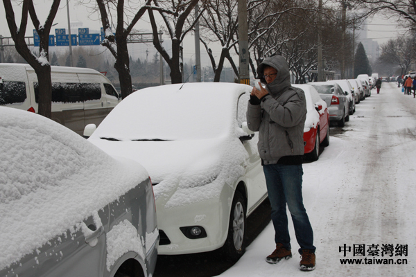 行人在兴奋地拍摄雪景。(中国台湾网 王文英摄)