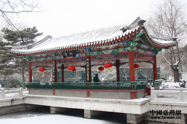 大观园沁芳亭上着白衣。(中国台湾网 王文英摄)