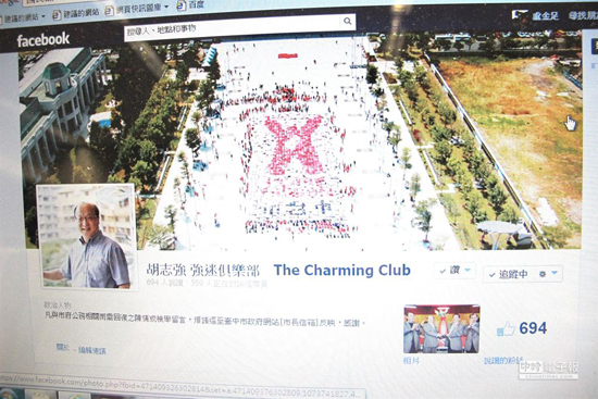 台中市长胡志强的脸书开张,吸引网友加入“强迷俱乐部”。图片来源:台湾《中时电子报》