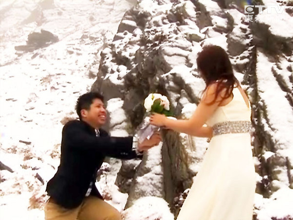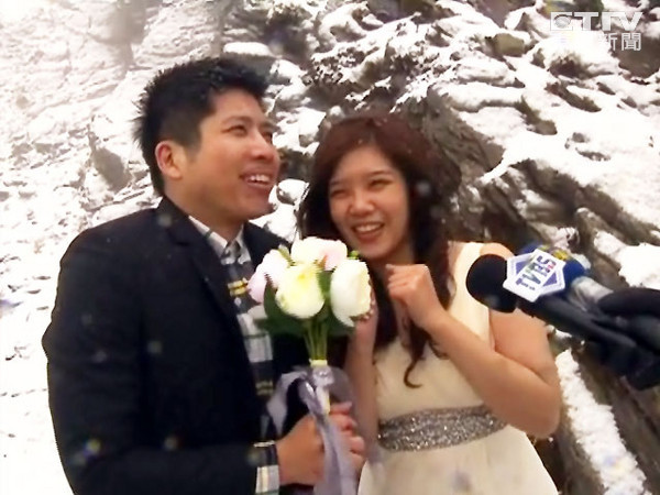 中国台湾网2月10日消息 据台湾今日新闻网报道,寒流发威加上丰沛水气影响,台湾玉山10日降下8公分大雪,合欢山也积雪约5公分,吸引不少民众开车前往打雪仗、堆雪人,还有人拚着天冷穿婚纱上演求婚记。