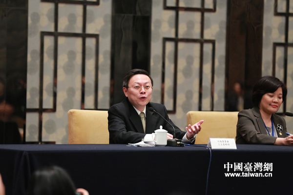 2月11日,台湾陆委会负责人王郁琦在南京紫金山庄举行记者会,说明“张王会”成果。(中国台湾网 田云鹏 摄)