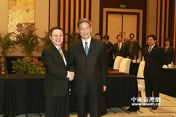 国台办主任张志军2月11日下午在南京与台湾方面陆委会负责人王郁琦举行双方两岸事务主管部门负责人首次正式会面。(中国台湾网 田云鹏 摄)