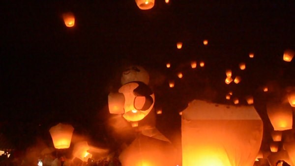 中国台湾网2月15日消息 据台湾《中国时报》报道,平溪天灯节昨(14)日压轴场遇上大风雨,但适逢元宵及情人节,仍吸引9万多名游客前来。主灯“圆仔天灯”则敌不过风雨,受雨打湿后重量增加,在众目睽睽下,于雨中滑行30米后,撞上电杆烧毁。