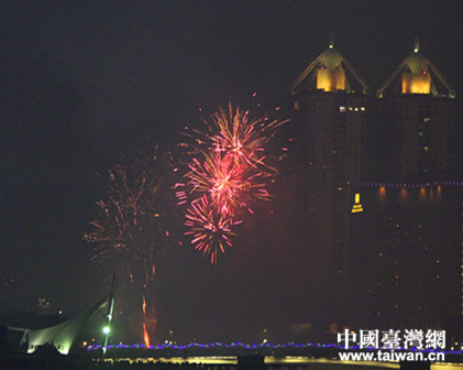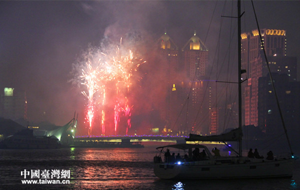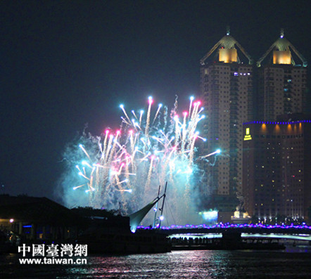 高雄爱河畔绽放水面烟火。(中国台湾网 李婷婷 摄)