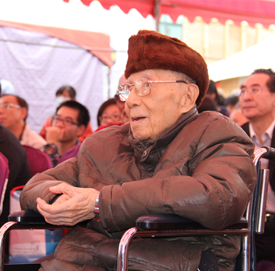 百岁老人在台下欣赏京剧表演,不时打着拍子,轻声吟唱。(中国台湾网 李婷婷 摄)