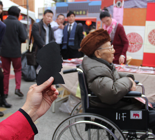 剪纸师傅为百岁老人剪影。(中国台湾网 李婷婷 摄)