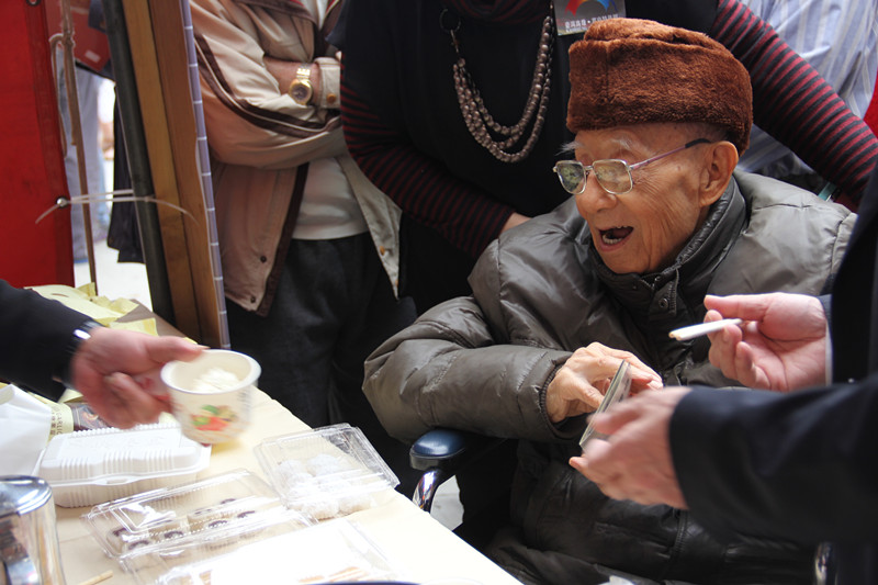 老人家品尝都一处烧麦。(中国台湾网 李婷婷 摄)