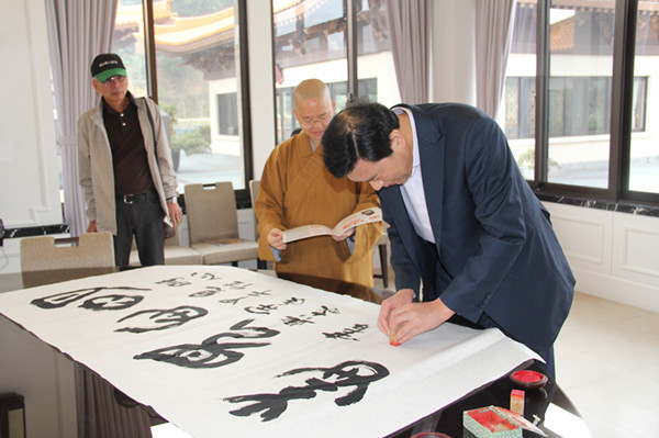 北京荣宝斋美术馆长王兴家现场挥毫泼墨。(中国台湾网 李婷婷 摄)