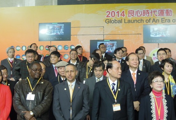 由太极门主办的良心时代16日举办开启仪式,吕秀莲(右下)与台大医师柯文哲(左上)站超远。(台媒图)